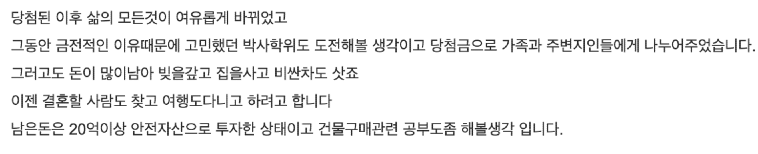 일단 로또 당첨 1등 70억 당첨, 47억수령 인증글을 읽는내내