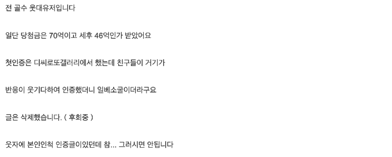 (디씨에 올린 로또1등 70억 수령)글은 삭제했습니다. (후회중)