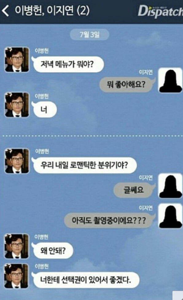 이병헌 성공적 논란 & 이병헌 카톡 논란: 디스패치가 공개한 바에 따르면, 이병헌 씨는 이지연 씨에게 "내 머릿속엔 내일, 너, 로맨틱, 성공적" 등의 메시지를 보냈습니다.