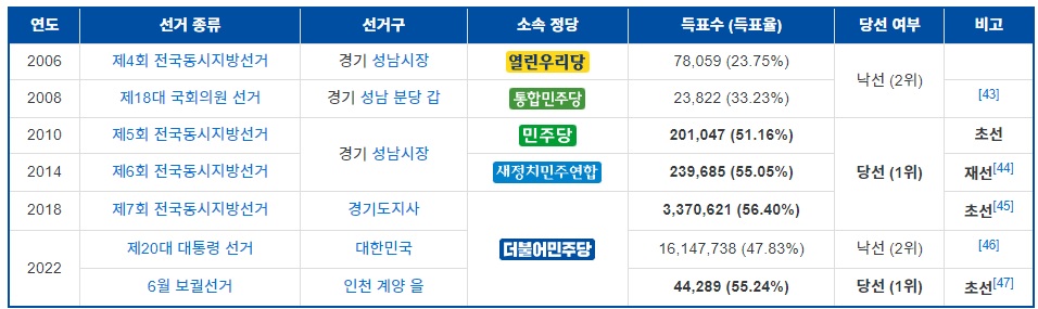 재임기간 : 제19·20대 경기도 성남시장 2010년 7월 1일 ~ 2018년 3월 15일