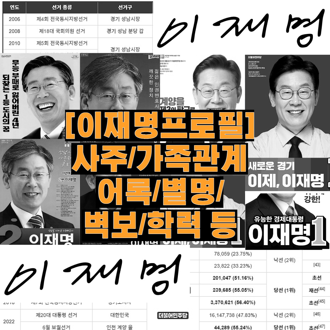[이재명 프로필] 이재명 사주, 가족관계, 어록, 별명 등