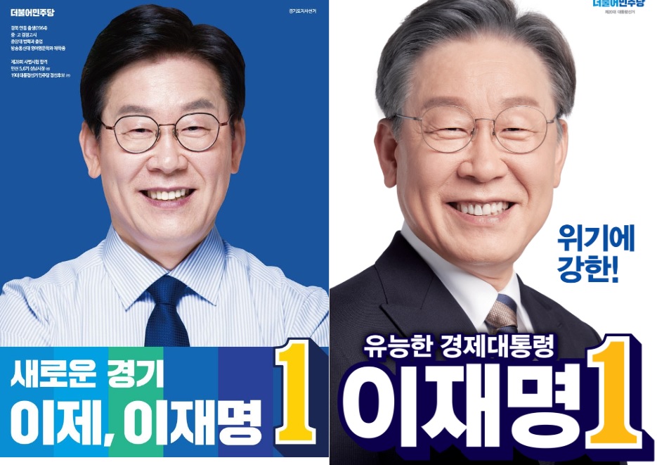- 이재명 대표의 역대 선거 벽보를 연도별로 갖고와봤습니다.