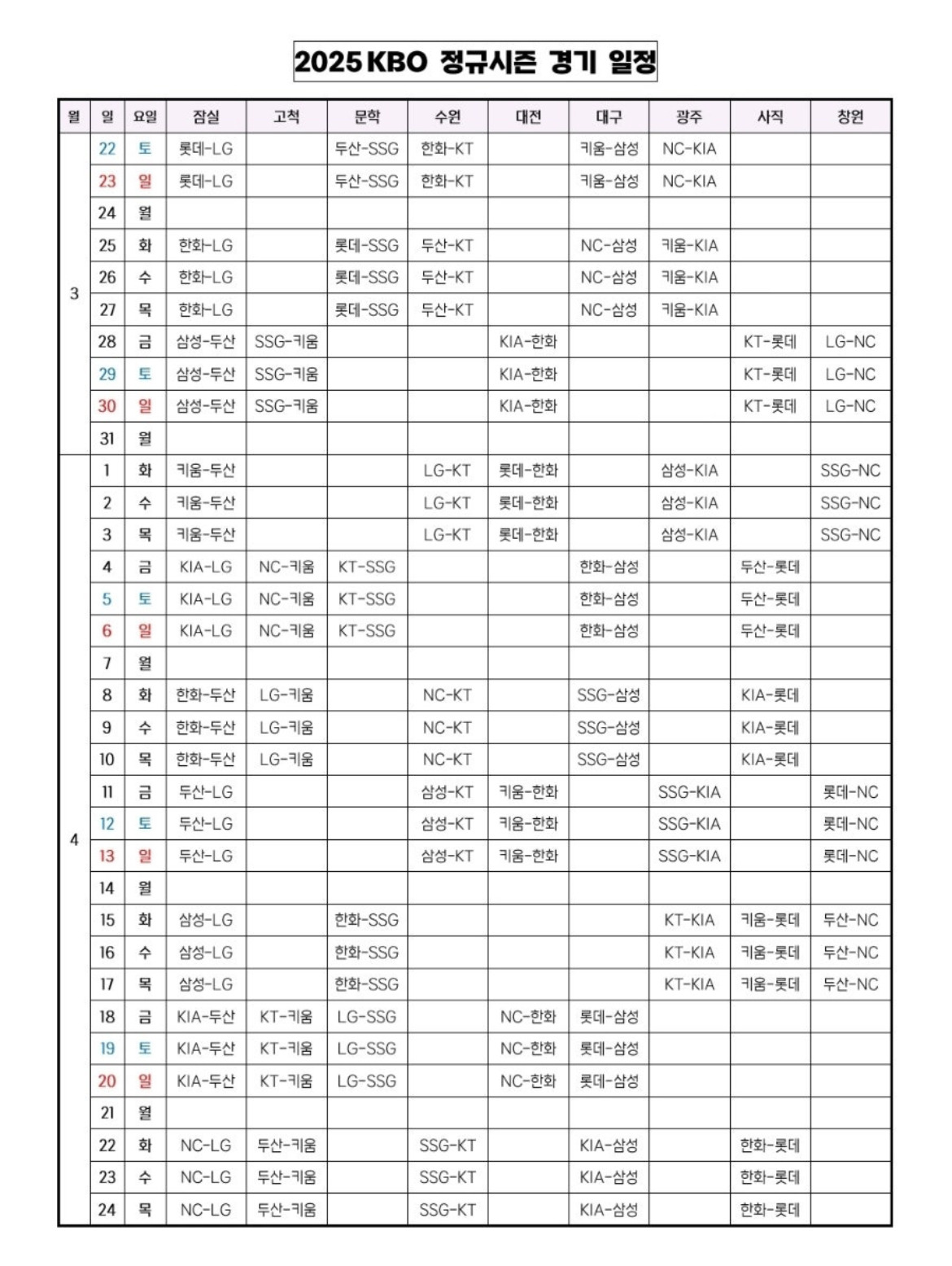 Opening March 22nd, 2025 KBO League schedule confirmed...Hanwha fans