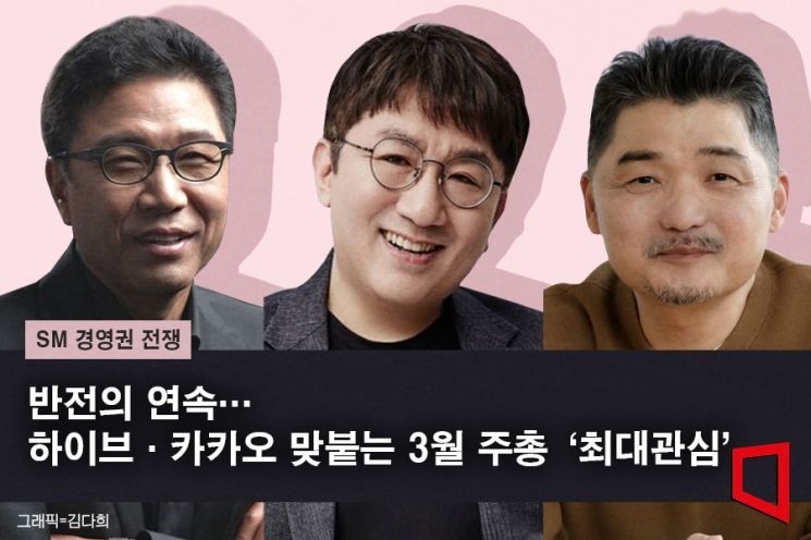 원래 에스엠의 주인이었던 에스엠 이수만이 하루아침에 쫓겨났으며, SM엔터테인먼트의 경영권은 점점 더 희미해지고 있습니다. 구경하던 옆집(카카오)과 더 큰 옆집(하이브)에서 에스엠의 경영권을 갖고 갈 것으로 보입니다.