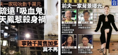 전 남편의 일가족 4명이 용의자로 체포됐다고 홍콩 언론은 전했습니다.